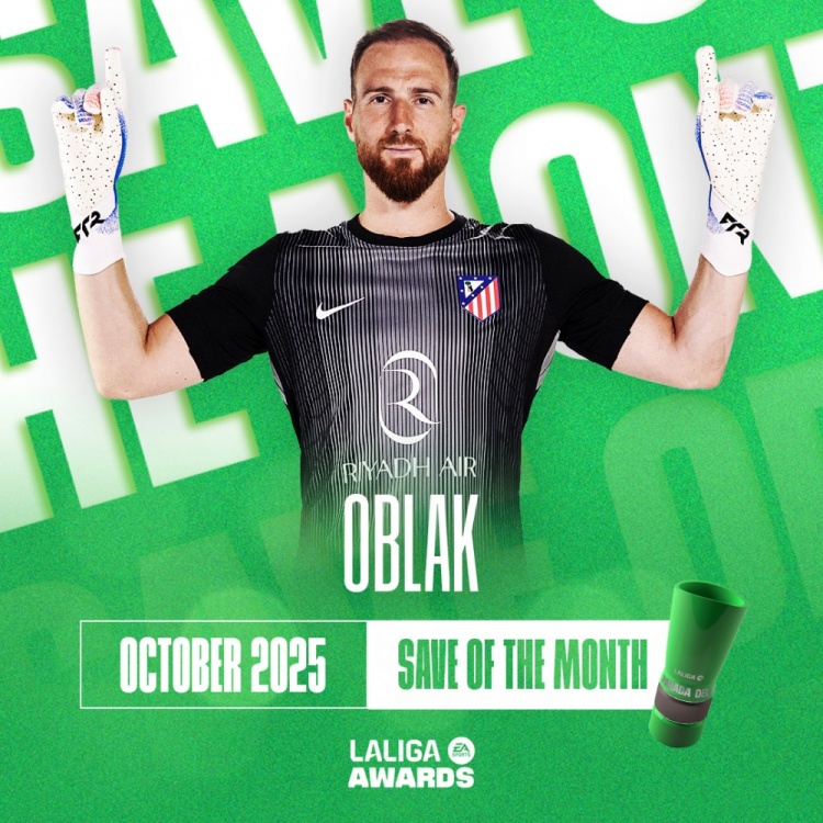 2025-10-31 00:28:28西甲官方:战奥萨苏纳第90分钟神扑救主,奥布拉克获10月最佳扑救